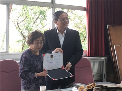 屏女校長林勳棟表示,高橋勅子時代,屏女並沒有畢業證書,今天把特地製作的畢業證書頒給她。