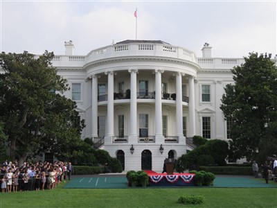對於美國總統當選人川普2日與台灣總統蔡英文通話,白宮國安會發言人普萊斯重申美國信守於其「一中政策」。圖為美國白宮。圖/張加