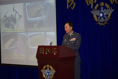 鍾樹明少將說明近來發生的空拍機闖入機場事件。圖/程嘉文