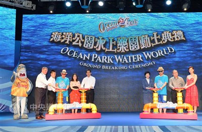 香港海洋公園於2015至2016年度出現虧損,原因包括大陸旅客減少等,園方公布明年起調漲門票。圖為海洋公園的水上樂園於去年舉行動土儀式。圖/中央社