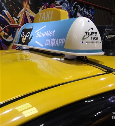 台北科技大學研發「BlueNet」計程車叫車App,還為計程車設計文創風車頂燈。圖/黃士嘉提供