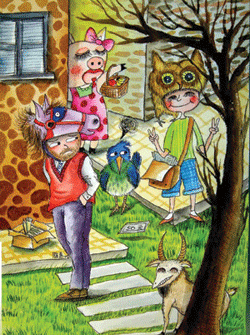 走著走著,突然一對山羊走嘻嘻笑笑地,迎著老馬走過來:「好棒喲!我們已經存了二萬多塊,足夠房租跟生活費啦!」