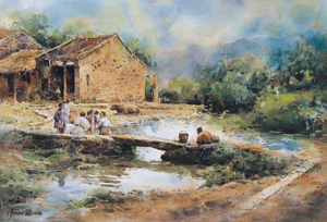 移時,他進屋了,把一袋九龍草溼漉漉地擱在門軸邊酖酖天候已不早,我問他這樣子多少錢並表示要回家了。他卻叫我吃過飯再走,我驚慌得期期艾艾地謙辭著。他說沒關係,就當作是陪二個「老伙子」作伴……我才拿捏著擺正了手腳。談話間大嬸端飯菜來佈在桌面;是荷包蛋、白切肉和一碗公的青菜豆腐湯,猶自冒著香味的熱氣令人垂涎。大嬸盛一碗飯給我,隨即兩老竟然把蛋和白切肉爭相往我碗裡夾,垛得都尖了。阿伯拿筷子點著,示意我快吃。羞赧地瞅他們一眼,撥了一小口,方才停在頭髮的雨水流進眼裡又溢出來,我擦了擦,放開懷大口吃了起來。