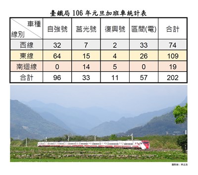 台鐵元旦連假將加開202班車。圖/台鐵提供