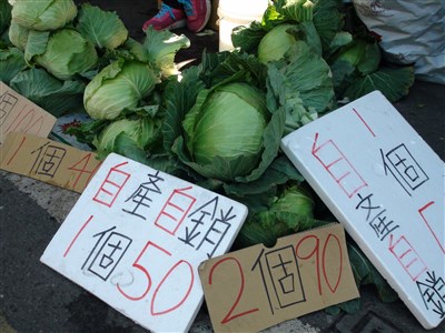 【本報雲林訊】1個月前尚處高價的高麗菜,最近進入盛產期,價格也跟著直線下滑,雲林產地的菜市場,處處可見一顆僅3、50元的高麗菜,不少農民自產自銷,甚至上網賣菜,希望能減少運銷成本,少賠點錢。