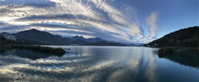 【本報南投訊】隨著今年遲到的東北季風,加上南方雲系比較強,日月潭水氣豐富,帶來雲層的變化與流動。寒流來襲之前,冷熱交替,天空的雲彩變化自然更豐富,成為拍照行家的最愛。