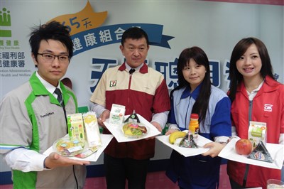 國健署首度與4大超商、連鎖早餐店、飲料店合作,由營養師設計健康早餐組合,今年底到明年初,店家將陸續放上海報訊息,推薦健康菜單。