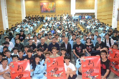 藝人澎恰恰今天到台南一中辦音樂會講座,讓學生欣賞具台灣特色的音樂劇。圖/鄭惠仁