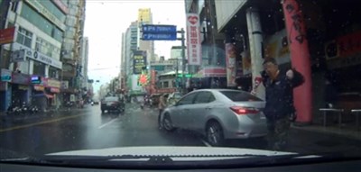 吳姓男子原本要路邊停車,卻被突然冒出的男子阻擋,事後將畫面po上網,引起網友討論。圖/林麒瑋翻攝