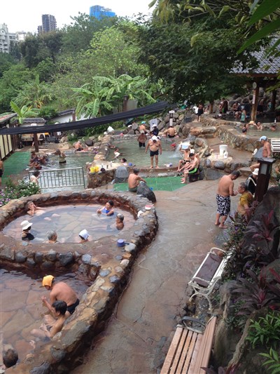 北投公園露天溫泉浴池,泡湯客絡繹不絕。圖/台北市公園處提供