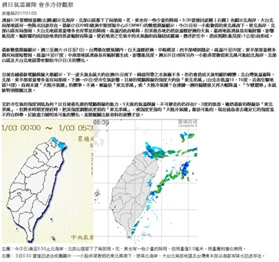 吳德榮說,今天有一小股微弱的東北風南下,使北海岸、北部山區有局部雨。圖/取自氣象應用推廣基金會