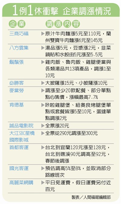 1例1休衝擊 企業調漲情況 製表/人間福報編輯部