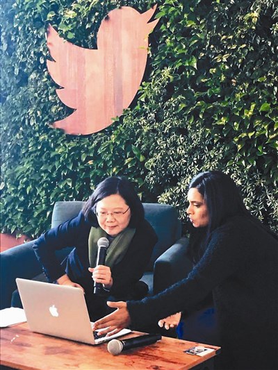 蔡總統參訪推特總部時,並開設個人的英文官方帳號。據透露,蔡總統原本就有中文推特帳號,但已多年沒有使用。