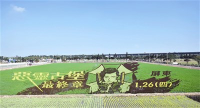 《惡靈古堡:最終章》女主角蜜拉喬娃維琪,今年躍上彩稻田,成為全台最大的電影海報彩稻田。圖/屏東縣政府提供