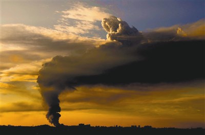泰豐輪胎桃園中壢廠前天火警,攝影工作者吳漾在新北市三峽一處十八樓高的工地上,見到濃煙形塑出空中奇景,像是午後的「牧神」,乘坐雲上,冷眼瞧著火場沉思。圖/吳漾提供