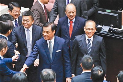 立法院昨天開完臨時會,行政院長林全(前右)前往立法院議場,向立法院長蘇嘉全(前中)與立委致意。圖/中央社