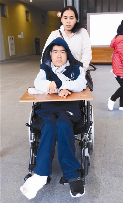 張軒誠自小患脊髓性肌肉萎縮症,經常進出醫院,曾有九年時間在家自習,原本家人擔心他身體不方便、不支持升學,後來在他努力說服下,進入蘇澳海事就讀。張軒誠昨到考場,右腳還打著石膏,原來是前幾天不慎撞到腳。身為高職生的他,準備學測相較吃力,但他堅持到最後一秒、努力嘗試一下,希望能考出佳績。