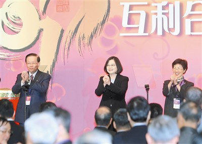 蔡總統昨天致詞時對兩岸關係著墨不多,她說,政府願意抱持最大的善意,根據兩岸關係的動態發展,和對岸進行誠懇的對話和磋商,體現良性互動、互利雙贏的經貿合作關係。