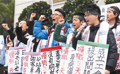 【記者陳忠賢台北報導】頂著寒流來襲,台鐵產業工會昨天發起抗議遊行活動,隊伍從交通部走到總統府,要求改革過勞班表,且春節未出勤是依法休假,盼台鐵撤曠職單。對於工會的訴求,交通部長賀陳旦表示,若有請假可從寬處理,但仍盼員工以服務為優先;行政院發言人徐國勇則表示,政院同意台鐵再新增約三百多人,補人力不足之缺。