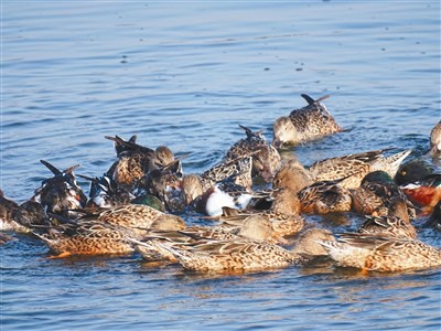 鰲鼓溼地近日可見成群嬉水的冬候鳥,生態保育團體昨批能源局,要在野鳥棲地上建置太陽能板,將對台灣生態造成巨大衝擊。圖/黃煌權