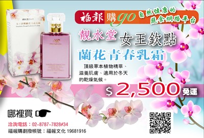 福報購專欄 |2017.02.17 語音朗讀 338觀看次 字級 大 中 小 靚水堂女王欽點蘭花青春乳霜 頂級草本植物精華,滋養肌膚,適用於乾燥的冬天氣候。 前一篇文章 揭開古文化密碼 2/25開幕 下一篇文章 都市佛學院招生 熱門新聞 01秋節送暖 佛光人進光復祝福2025.10.0902三好校園化身賑災物資中心 菲師生協助包裝2025.10.0903響應零飢餓 日光寺廣贈公益米2025.10.1004佛光山大明寺、宏法社 獲頒苗栗縣績優宗教團體2025.10.1005星雲大師全集【講演集】佛教與青年—佛教青年 成功立業之道 2-12025.10.0906車速表 準確性如何?2025.10.0907VEGRUN正念路跑 法寶寺攜手竹市府2025.10.0908時速表為何要有誤差?2025.10.0909貓咪神奇U型躺 像玩切割魔術2025.10.0910警攔違規自駕車 沒駕駛無法開單2025.10.09 訂閱電子報 台北市 天氣預報 台灣一週天氣預報 相關報導 以文字護持人間福報運動睡眠新科技 養生保健新利器房仲第一品牌 永慶加薪3% 體驗美好手作 製皂幸福時光 博愛社大春季班招生中 薩克斯風吹奏春季班 人間大學台中分校招生中 跨越十年縱橫南半球到北半球 《行者》新書上市
