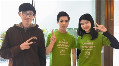 南一中的周益宏(左起)、雄中張宸維、北一女周世婷,成為香港中文大學的最佳代言人。圖/馮靖惠