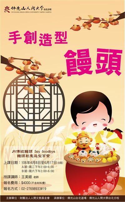 手創造型饅頭,4月8日至6月17日台北道場開課。