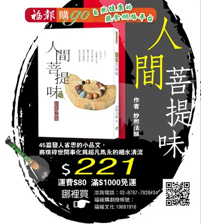 福報購專欄 |2017.02.22 語音朗讀 336觀看次 字級 大 中 小 人間菩提味 45篇發人省思的小品文,將瑣碎世間事化為超凡雋永的細水清流。 前一篇文章 佳油寶鮮果小站 下一篇文章 一句好話徵文比賽 熱門新聞 01陸建匈塞鐵路 塞國段全線通車2025.10.0502全球佛光人 雲端共識和諧和平2025.10.0503埃及熱氣球映門農巨像2025.10.0504以愛育才 20教師獲頒星雲教育獎2025.10.0505菲律賓宿霧強震 佛光人馳援賑災2025.10.0606高市早苗 電視台主播邁向首相寶座2025.10.0507虎頭埤風景區 推動纜車BOT案2025.10.0508心保和尚闡述《八大人覺經》修行是生命最好的投資 2025.10.0509【修行在人間】佛心的慈視52025.10.0510【人間行者心】感恩茶會 一場殊勝的相遇2025.10.05 訂閱電子報 台北市 天氣預報 台灣一週天氣預報 相關報導 以文字護持人間福報運動睡眠新科技 養生保健新利器房仲第一品牌 永慶加薪3% 體驗美好手作 製皂幸福時光 博愛社大春季班招生中 薩克斯風吹奏春季班 人間大學台中分校招生中 跨越十年縱橫南半球到北半球 《行者》新書上市