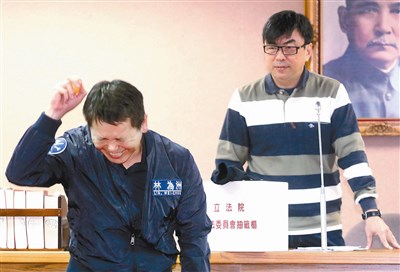 立法院昨天選舉各常設委員會召委,主審年金改革法案的司法及法制委員會最受矚目,民進黨段宜康(右)、蔡易餘與國民黨林為洲(左)三人同獲五票,以抽籤決定,林為洲首先抽,但籤運不佳沒抽中,面露痛苦表情。圖/屠惠剛
