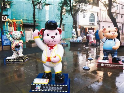 新北市瑞芳區公所今年以「黃金山城熊好玩」為主題,在瑞芳火車站前廣場與區民廣場放置十八座泰迪熊戶外裝置藝術,有面對火車站的「歡迎光臨」,也有背對火車站的「說再見」,泰迪熊的俏皮好動,馬上吸引許多民眾拍照打卡,展至五月十四日。