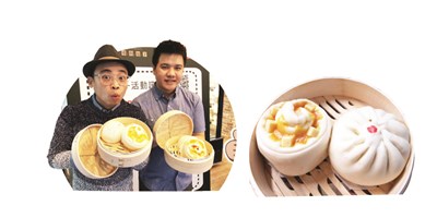 藝人阿松(左)與包子師傅阿翔(曾煒翔),推廣好吃包子,開幕期間買包子就能幫助偏鄉孩子。
