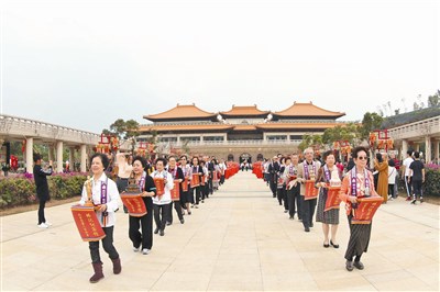 【人間社記者李生鳳大樹報導】二○一七年地宮珍寶入宮暨百萬心經入法身法會,昨日於佛陀紀念館盛大舉行,此為佛館開館以來第八次盛會,去年首度與信徒香會結合,今年珍寶捧寶達三百五十件之多,將啟用第二十一個地宮存放文物,所存入的珍寶待四千八百年後再開啟,堪稱千載一時,一時千載。