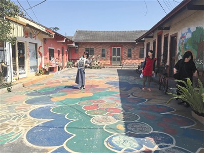 穿過紅磚牆的廊道,映入眼簾的是三合院地上整片繽紛的花朵彩繪,還有童話般的卡通牆面、貓與杯子,搭上一輛老單車、一張舊板凳,都成為旅人的浪漫取景處,走累了,坐下來喝一杯主人的精品咖啡,曬著太陽享受難得的假日悠閒。