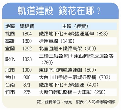 軌道建設 錢花在哪? 製表/人間福報編輯部