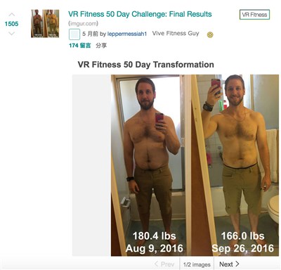 他分享,每天玩VR的遊戲1小時,堅持50天就瘦了6.3公斤,甩掉鮪魚肚,檢測顯示,玩VR遊戲平均小時消耗796卡路里,比一般人跑步1小時消耗更多。
