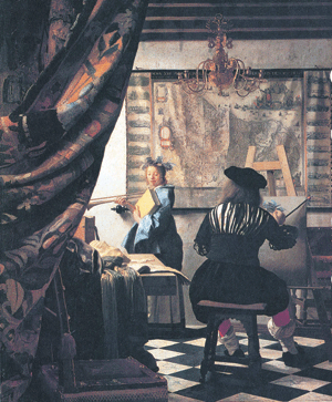 真正的藝術家,很少為當時代的人理解和認同,維梅爾生前沒沒無名,這幅名為「畫室裡的畫家」,無疑是畫家將自己拋進古的歷史,並藉用象徵古歷史中美麗的女神,含蓄地(畫家背對著觀者)道出自己才華洋溢,卻孤寂一生的無奈。