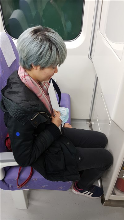 再來像直達車的車廂椅背設置收納式餐桌,但椅背卻貼了「禁止飲食」標示,月臺、動線、班次的電子看板、轉乘接駁等指標,布局、字體與色彩尚需更明顯、放大,才有助於善加使用。