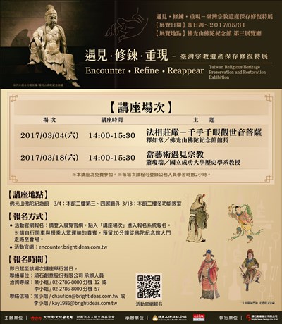遇見、修鍊、重現 |2017.03.03 語音朗讀 189觀看次 字級 大 中 小 台灣宗教遺產保存修復特展 即日起至5/31展出。講座場次:3/4、3/18。地點:佛陀紀念館本館。 前一篇文章 檀之鄉濃縮酵素洗衣精 下一篇文章 索取《人間佛教佛陀本懷》 熱門新聞 01【時光重逢】 壺納鄉思,彩繪揚瓷 ——林振龍的陶藝人生2025.10.1702【大師身影】 曲歌繞梁:音樂家李叔同2025.10.1603佛光山線上佛學院 學子雲端精進2025.10.1604【浮世畫框】 藝術回歸生活喜悅2025.10.1605雪梨佛光人 三代喜同堂2025.10.1606社論--放下手機,重拾人生2025.10.1707巴黎佛光人捐物資 關懷弱勢群體2025.10.1608英文畢業門檻 陽明交大廢除2025.10.1609病假扣全勤獎金 勞長認不合理2025.10.1610從極地到珠峰 世界級地標郵局2025.10.16 訂閱電子報 台北市 天氣預報 台灣一週天氣預報 相關報導 以文字護持人間福報運動睡眠新科技 養生保健新利器房仲第一品牌 永慶加薪3% 體驗美好手作 製皂幸福時光 博愛社大春季班招生中 薩克斯風吹奏春季班 人間大學台中分校招生中 跨越十年縱橫南半球到北半球 《行者》新書上市