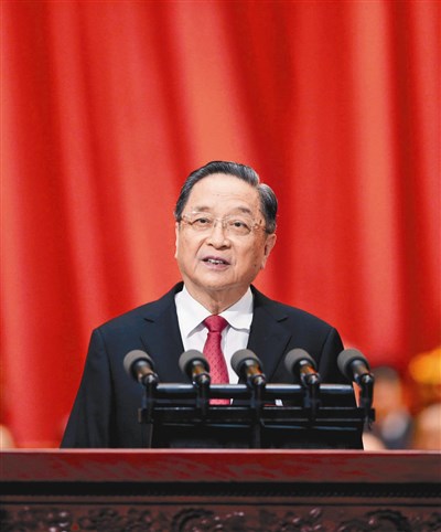 大陸全國政協主席俞正聲,昨代表政協第十二屆全國委員會常務委員會作工作報告。圖/新華社