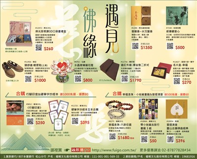 福報購專刊:遇見佛緣 |2017.03.04 語音朗讀 519觀看次 字級 大 中 小 福報購專刊:遇見佛緣 請上福報購Http://www.fuigo.com.tw/選購。 前一篇文章 素博展盛大招商 下一篇文章 台大推廣部「稼軒詞的豪氣與深情」 熱門新聞 01【分數之外】看見另一種英文2026.04.0802租賃車業者違法攬客 觀光署:最高罰200萬元2026.04.0703清明豪雨 合歡溪出現新堰塞湖2026.04.0904杉林溪園區 紫藤花盛開2026.04.0805計程車掛牌費喊到35萬元 交部出手2026.04.0806火金姑故鄉 賞螢好去處2026.04.0907哥國動盪城 變身世界圖書之都2026.04.0808【練瑜伽品生活】英雄式二 英雄不能只看正面2026.04.0809美伊談判 45天停火協議2026.04.0710吃素也能大補「鐵」 開心果芝麻含量豐2026.04.08 訂閱電子報 台北市 天氣預報 台灣一週天氣預報 相關報導 以文字護持人間福報運動睡眠新科技 養生保健新利器房仲第一品牌 永慶加薪3% 體驗美好手作 製皂幸福時光 博愛社大春季班招生中 薩克斯風吹奏春季班 人間大學台中分校招生中 跨越十年縱橫南半球到北半球 《行者》新書上市