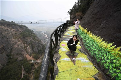 3D畫繪懸崖棧道 行走如漫步雲端 |2017.03.07 語音朗讀 657觀看次 字級 大 中 小 行走在3D油畫懸崖棧道上,彷彿漫步雲端。圖/中新社 【本報綜合報導】中國大陸湖南平江石牛寨,3D油畫懸崖棧道7日完工,遊人行走在棧道上彷彿漫步雲端。 據悉,該棧道全長106公尺,分為地面立體畫與牆面3D油菜花畫,由7位油畫師耗時7天完成。 前一篇文章 普中繁星錄取率9成5 王欣屏進台大 下一篇文章 繁星放榜/佛光、南華大學 多科系滿招 熱門新聞 01瑕疵品反爆紅 哭哭馬賣到缺貨2026.01.1402日電鐵貴志站 任命第3代貓站長2026.01.1403平價版人類洗澡機 預計年底開賣2026.01.1404重慶川普紅不讓 談旅遊給人歡喜2026.01.1405新馬寺 佛光兒童歡喜入學禮2026.01.1306南亞偏鄉師參學新馬寺 交流創意教學法 2026.01.1407菲律賓三好校園頒獎 129校獲表揚2026.01.1308台南林鳳營 落羽松花海2026.01.1309【考考你的智力】2026.01.1210【論愛談情】有了儀式感 多了幸福感2026.01.13 訂閱電子報 台北市 天氣預報 台灣一週天氣預報 相關報導 【星雲大師如是說】處事禪心【星雲大師如是說】人間佛教【星雲大師如是說】正信之美【星雲大師如是說】輪轉相繼【星雲大師如是說】有情的層次【星雲大師如是說】六忍歌