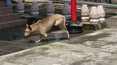 【本報台東訊】實在太神奇,南迴公路台東縣達仁鄉森永路段上,一間地藏庵有隻4、5歲母狗「小黃」,過去2年來先後被捕獸夾夾斷左前腿及左後腿,牠不但秉著求生意志活下來,能走、能顧家,還會陪法師作早課念佛經。