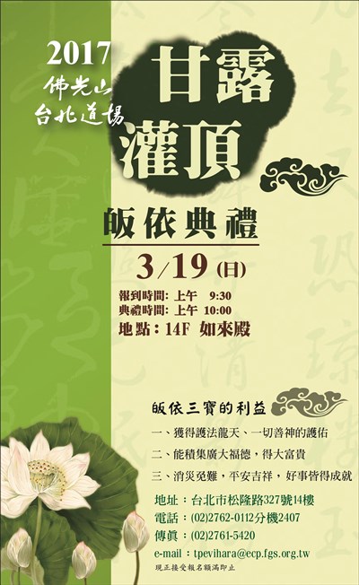 台北道場3/19舉行甘露灌頂皈依典禮。