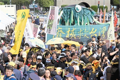 【本報台北訊】蔡政府上台後廢核團體首度走上街頭,全國廢核行動平台昨串連台北、高雄、台東同步遊行,超過五千人上街頭發出怒吼。環保團體強調,新政府雖喊出「非核家園」當選舉口號,但老舊電廠除役、核廢料處置或再生能源推動都遲滯不前,「改革效率和決心遠不如民間期待」。
