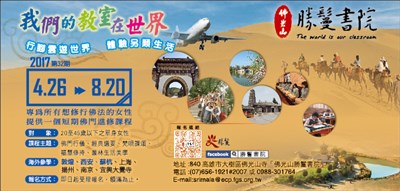 勝鬘書院招生 |2017.03.20 語音朗讀 427觀看次 字級 大 中 小 勝鬘書院招生 對象:20至45歲以下之單身女性,即日起受理報名。 前一篇文章 福慧家園共修會 下一篇文章 訂報優惠 熱門新聞 01明德水庫蓄水量僅27% 今起供4停42026.04.0102【讓愛自由】纏繞與獨立之間2026.04.0203新生首次到校2026.04.0204星雲大師靈骨分燈日本 法燈長明2026.04.0105東京櫻花滿開2026.04.0106星雲大師靈骨分燈泰國 化益世人2026.04.02079公尺高恐龍 現身澄清湖2026.04.0108打字機重返課堂 對抗AI代寫2026.04.0209中美並重 鄭麗文傳6月訪美2026.04.0110睽違53年 NASA載人繞月1日升空2026.04.01 訂閱電子報 台北市 天氣預報 台灣一週天氣預報 相關報導 以文字護持人間福報運動睡眠新科技 養生保健新利器房仲第一品牌 永慶加薪3% 體驗美好手作 製皂幸福時光 博愛社大春季班招生中 薩克斯風吹奏春季班 人間大學台中分校招生中 跨越十年縱橫南半球到北半球 《行者》新書上市