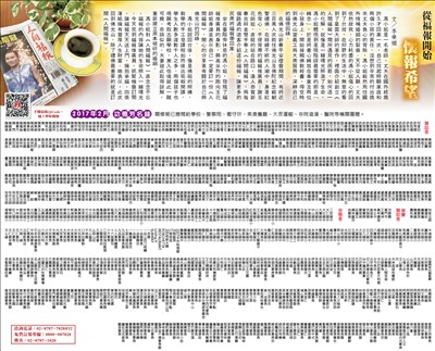 關懷專刊 懷抱希望 |2017.03.22 語音朗讀 423觀看次 字級 大 中 小 關懷專刊 懷抱希望 關懷報已贈閱給學校、警察局、看守所、素食餐廳、大眾運輸、寺院道場、醫院等機關團體。 前一篇文章 【澳綠康倍】精粹蜂王漿膠囊食品 下一篇文章 美國文化饗宴參學團 歡迎報名 熱門新聞 01最大規模無王日 逾3200場反川示威2026.03.3002美首批陸戰隊抵中東 地面戰在即2026.03.3003宜蘭綠博會 探索真理2026.03.3004陸首都維安 北京全面管制無人機2026.03.3005MLB 鄧愷威轉隊太空人 初登板奪首勝2026.03.3006乾旱嚴峻 雲林古坑春茶產量腰斬2026.03.3007北韓強化戰略武器2026.03.3008拉斐爾壁畫2026.03.3009昆士蘭協會 榮獲洛根市文化影響力獎2026.03.3010剛果文化壁畫2026.03.30 訂閱電子報 台北市 天氣預報 台灣一週天氣預報 相關報導 以文字護持人間福報運動睡眠新科技 養生保健新利器房仲第一品牌 永慶加薪3% 體驗美好手作 製皂幸福時光 博愛社大春季班招生中 薩克斯風吹奏春季班 人間大學台中分校招生中 跨越十年縱橫南半球到北半球 《行者》新書上市