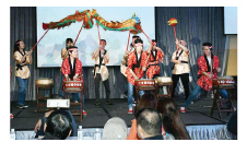 圖為仁友愛心家園憨兒們的太鼓表演,每位都笑容滿面,認真的演出。