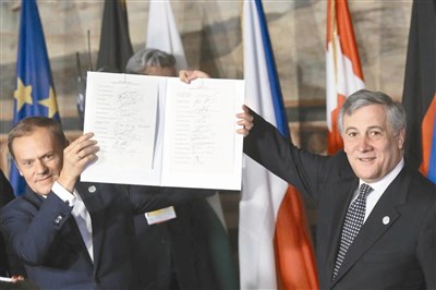 寰宇新聞 一周回顧 整理/闕曉菁 |2017.03.31 語音朗讀 1101觀看次 字級 大 中 小 歐盟27個成員國領導人簽署羅馬宣言。圖/美聯社 納瓦尼號召上千俄國民眾上街示威反貪腐。圖/美聯社 林鄭月娥以777票在行政長官選舉中 勝出,成為香港首位女性特首。 圖/新華社聯合國27日召開禁止核武聯合會談, 美國駐聯合國大使海利表示,「壞分子 」不會簽署或遵守條約。 圖/美聯社川普(右)簽署行政命令,推翻歐 巴馬的環保政策。 圖/美聯社梅伊簽署對歐盟的官方通知函,啟 動脫歐程序。 圖/美聯社 3/24 美國 歐記健保廢不了 川普受重挫 美國總統川普意圖廢除歐記健保並取而代之的「美國健保法案」(川記健保),24日因未獲足夠共和黨議員支持,在表決前決定撤案。這是就任2個多月的川普繼針對穆斯林的入境禁令遭法院凍結以來,政策再次慘敗。 共和黨去年11月選舉後完全執政,首次於國會推動重大法案卻臨時喊卡,不僅是川普上台以來最大挫折,也突顯川普與共和黨籍眾院議長萊恩推動立法力有未逮。萊恩於記者會上說,他告訴川普湊不足支持票數,最好撤案,川普同意。對當了8年反對黨的共和黨來說,萊恩認為這代表同志還不熟悉如何扮演好執政黨的角色。 3/25 義大利 羅馬條約60年 歐盟「重新開始」 25日是標誌歐洲邁出整合第一步的「羅馬條約」簽署60周年,在英國啟動脫歐談判之際,其餘27個成員國領袖在義大利首都羅馬參加峰會,簽署羅馬宣言,試圖讓歐盟繼續前行,承諾在「無法全體意見翕然一致」時給予成員國更多制定政策和結成小團體的自由。義大利總理簡提洛尼指出「歐盟在羅馬重新開始」。 1957年3月25日,「歐洲煤鋼聯營」6個成員國(比利時、法國、西德、義大利、荷蘭和盧森堡)在羅馬簽署「歐洲經濟共同體條約」和「歐洲原子能共同體條約」(統稱「羅馬條約」),邁出歐洲整合進程的第一步,為建立歐盟奠定基礎。 3/26 俄羅斯 近百城市同步 要總理下台 成千上萬俄羅斯民眾26日在著名反對派領袖納瓦尼號召下,無視遊行集會禁令,在全俄國近百個城市同步走上街示威反貪腐,要求總理麥維德夫下台,納瓦尼與數百名民眾在遊行中遭拘捕。 納瓦尼日前發表一份影音報告,指控麥維德夫控制房地產帝國,並呼籲民眾上街抗議。這份報告在Youtube觀看次數超過1100萬次。 警方估計這場遊行人數約8千人,並出動了數十輛警車與大批鎮暴警察,警用直升機也在上方盤旋監控遊行現場。莫斯科法院以組織違法抗議活動為由,判納瓦尼入獄15天,罰款2萬盧布(約台幣1萬元)。 3/26 香港 林鄭月娥 回歸20年首位女特首 香港第5屆特區行政長官選舉,前政務司長林鄭月娥以777票高票當選,成為香港回歸20周年首位女特首,將在7月1日上任。 林鄭月娥當選後表示,她深感榮幸,亦感到任重道遠,大家的共同願望是希望香港前進,她會盡力幫助香港前進,她不止要面對一千多名選委,也要面向香港市民,她首要任務是團結社會,改善行政立法關係。她說,溝通可以找到出路、解決問題,讓不同的人和團體走在一起,撕裂自然可修補。她不期望一朝一夕可做到,但希望大家給予機會和時間,她會抱著初心加上謙卑,用工作和紮實的政績贏取未支持她的人認同,共同建設更好香港。 3/27 美國 UN禁核談判 40國杯葛 聯合國(UN)27日召開大會,希望協商出具法律約束力的全面禁止核武條約,但包括美國、俄羅斯、中國大陸、印度、巴基斯坦和澳洲在內逾40個國家杯葛。 至少113個國家參與當天在紐約展開的磋商。他們說,現在是力推消滅核武的時機,由於禁止核武擴散條約簽訂近50年,裁減核武軍備卻無重大進展,此時協商出核武禁令可產生道德說服力,建立全面禁止核武的國際標準。美國駐聯合國大使海利表示,禁止核武條約最終會令「想維持和平與安全的國家」解除核武,但「壞分子」不會遵守條約,「只有北韓會歡呼,我們所有人以及我們代表的人卻處於危險」。 3/28 美國 不甩氣候變遷 川普廢環保政策 美國總統川普28日簽署行政命令,推翻歐巴馬的環保政策,全面逆轉原本將燃煤的火力發電廠轉向清潔能源發電廠的政策,川普藉此實踐他重振煤礦業就業機會的競選諾言,他宣稱:「我的政府將結束反煤戰爭。」 業界和能源專家表示,這個命令不可能扭轉清潔能源趨勢,美國的電力主要來源終將來自天然氣、太陽能和風力發電;許多煤礦工人失業主因是來自礦廠自動化。該命令也撤銷了白宮「環境品質委員會」去年有關氣候變遷的指導原則,以及溫室氣體的社會成本的官方評估。 由於相關訴訟和制定新規程序,真正廢除前朝措施恐耗數年。 3/29 英國 梅伊簽署通知函 脫歐正式啟動 英國政府29日啟動脫離歐盟的程序,切斷雙邊44年的關係,履行9個月前公民投票的結果;首相梅伊當日清晨簽署了脫歐信函,這封根據里斯本條約第50條發出的官方通知函,由英國駐歐盟大使巴羅爵士遞交歐洲理事會主席圖斯克,正式展開脫歐程序。 里斯本條約第50條給予英國和歐盟兩年時間磋商,除非雙方都同意延長談判期限,否則英國將於2019年3月29日脫離歐盟。 正式協商可望於5月中旬展開;待磋商事務繁雜,包括跨境安全事項、歐盟逮捕令、遷移總部設在英國的歐盟單位,以及英國應為歐盟公務員提撥的退休金等。 3/29 美國 東芝撤離核電 聲請西屋破產 正在進行經營重建的日本東芝公司(Toshiba)29日決定把在美國的核電事業子公司西