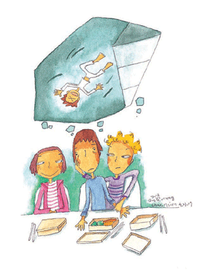 傑森, 維特和珊蒂在學校一起吃中餐.