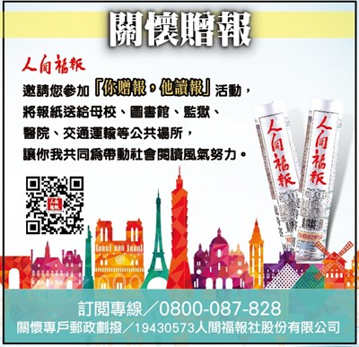 關懷贈報 |2017.03.30 語音朗讀 155觀看次 字級 大 中 小 關懷贈報 將《人間福報》送給母校、圖書館、監獄、醫院、交通運輸等公共場所。 前一篇文章 勝鬘書院招生 下一篇文章 妙檀香洗衣粉、洗衣精 熱門新聞 01南華大學茶禪雅集 靜坐書寫時光膠囊2026.03.2602星雲大師靈骨分燈歐洲 傳燈萬方2026.03.2603佛光山365日越文版 贈西貢日航大酒店2026.03.2704紅綠葡萄抗氧化抗發炎 連皮吃獲取健康全效益2026.03.2705台灣工藝3專書 呈現文化獨特樣貌2026.03.2706中職37年 明大巨蛋開幕戰2026.03.2707兒童節禮物 新北學生自己票選2026.03.2608北京中學老師 精準預言美伊開戰2026.03.2609滑雪勝地轉型 數位遊牧族進駐2026.03.2610全球首例 菲國進入能源緊急狀態2026.03.26 訂閱電子報 台北市 天氣預報 台灣一週天氣預報 相關報導 以文字護持人間福報運動睡眠新科技 養生保健新利器房仲第一品牌 永慶加薪3% 體驗美好手作 製皂幸福時光 博愛社大春季班招生中 薩克斯風吹奏春季班 人間大學台中分校招生中 跨越十年縱橫南半球到北半球 《行者》新書上市